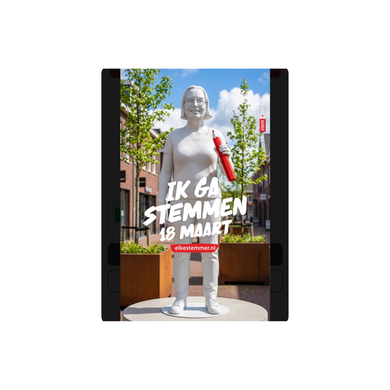Om zo Nederlanders naar de stembus te trekken. De stemlink waarop je zelf een eigen stem standbeeld dus kon maken daar nam ik ook gebruik van wilde dat namelijk ook wel een hebben. Zo gezegd zo gedaan, en duurde niet lang of ik heb er dus ook een maar dan op een foto.